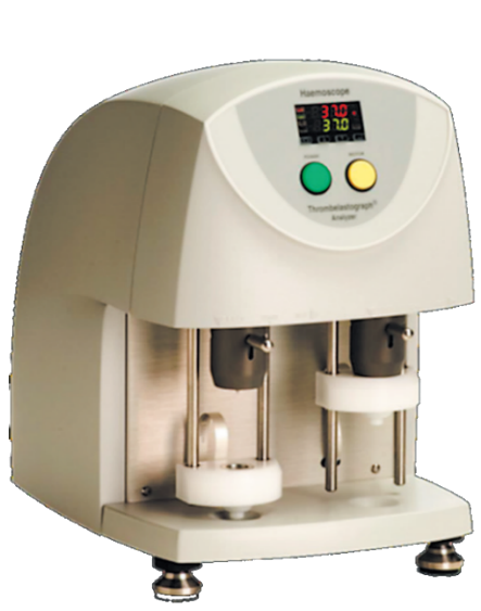 The thromboelastograph (TEG), invented in 1948 (Hartert), is the first analyzer for assessing the viscoelastic properties of a blood clot, which allows one to evaluate the clotting time of a blood sample, the rate of clot formation, the maximum clot density, fibrinolytic activity, the presence of heparin or new oral anticoagulants, to assess the functional activity of platelets, and to evaluate the quality of fibrinogen.